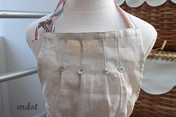 リネンのキッズエプロン 9月 6, 2016By mami 0 Comments Posted in: mdot girls (女の子服), リネン linen トリコロールカラーのリボンをポイントにしたリネンエプロンfor kidsを作ってみました。 超シンプル&オーソドックスなところが、、いいかな。ありきたりだけど、それもまた良いかな。 一人ぶつくさいいながら撮影。 裾を丸いカーブにしてみました。女の子向け。男の子用はやっぱりカーブじゃない方がいいですね。 ついでにリネンのクロスも縫いました。パンを作るときにほんっとにたくさん使うのですね。 mami @ tokyo