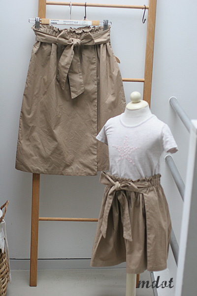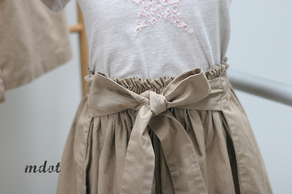 娘用。前に大きなリボン結びのスカートを作りました。知らなかったのですが、タイプライターリボンスカートと言うそうです。元は素材の名称のようです。