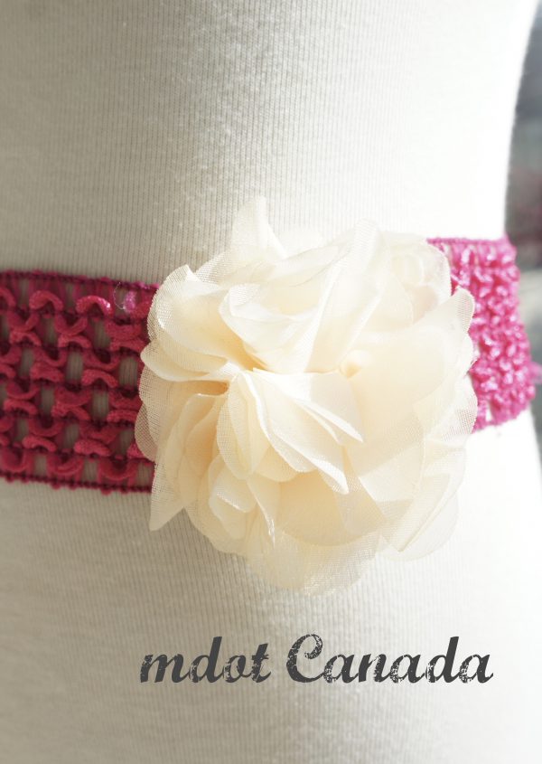 コサージュ付きウェストゴムベルト。トロントの現地校は、必ずお手洗い場にはハンドドライヤーかペーパータオルが常備されているため、子供達が学校にハンカチを持っていくという習慣がありません。なのに子供たちが週末に通う日本語補習校では日本式でハンカチを持参しなければいけない決まり。そこで補習校に通う女の子のお母さんから、移動ポケットとまでいかなくても、補習校の間だけハンカチを腰につけておけるようなウェストゴム的なものを何か作って欲しいとご依頼を受けました。そこで、女の子が喜びそうなパターンのゴムベルトにコサージュをワンポイントでつけて、お洒落ゴムベルトの完成!