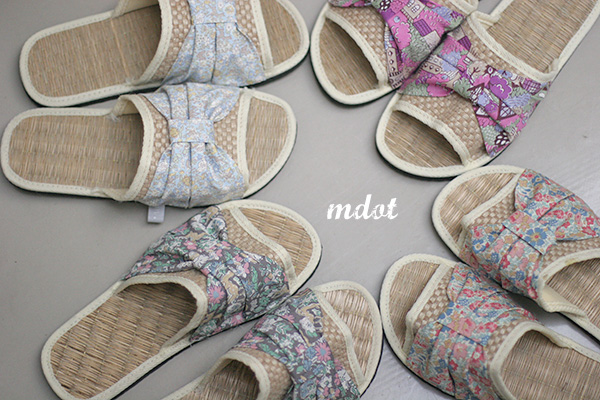 暑い夏はやっぱりたたみスリッパ。 今年はリバティのリボンをくっつけてみました。 これでいつでもお客様が来ても安…