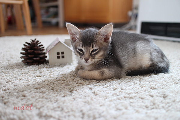 ソマリとトンキニーズのミックス猫のごまちゃん。1ヶ月前の写真です。 ストーブ前のあったかい場所がお気に入り。 猫ってほんとに一瞬で大人にな…