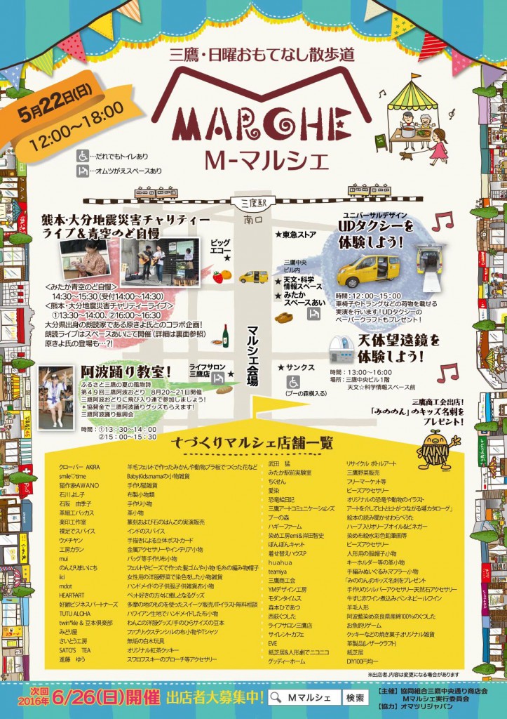 太陽サンサンの昨日、2回目の三鷹駅前商店街「mマルシェ」参加してきました。 前回はまだ肌寒かったので、スクールグッズをメインに持参。今回は夏日和だったので、 …