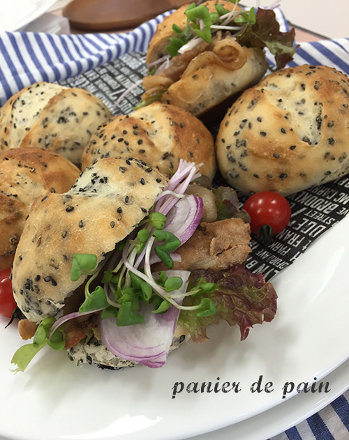 maho と michiruでpanier de pain(mdotのパン教室) の試食会。 こちらのセサミバンズはバターではなく、ショートニングを使…