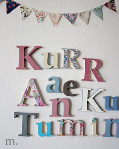 abc michiruに作ってもらったアルファベット。子供たちの名前ぐちゃぐちゃに飾ってみました。 ぐちゃぐちゃもなかなか面白いかも?…