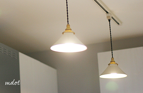 ペンダントランプキッチンライトはオルネドフォイユの陶器のpicoを採用。なかなかいい感じ。 merciランプの箱の中にはかわいいmerciのカードが入って…