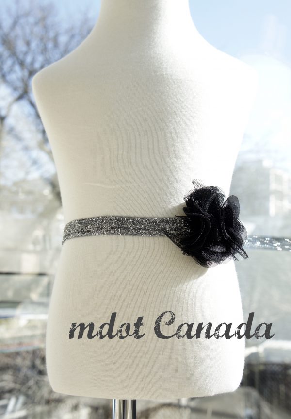コサージュ付きウェストゴムベルト。トロントの現地校は、必ずお手洗い場にはハンドドライヤーかペーパータオルが常備されているため、子供達が学校にハンカチを持っていくという習慣がありません。なのに子供たちが週末に通う日本語補習校では日本式でハンカチを持参しなければいけない決まり。そこで補習校に通う女の子のお母さんから、移動ポケットとまでいかなくても、補習校の間だけハンカチを腰につけておけるようなウェストゴム的なものを何か作って欲しいとご依頼を受けました。そこで、女の子が喜びそうなパターンのゴムベルトにコサージュをワンポイントでつけて、お洒落ゴムベルトの完成!