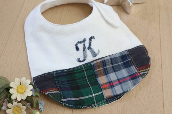 男の子用のイニシャル入りベビービブ。