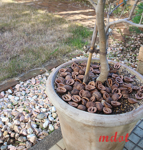 mami @ tokyoです。 名古屋の maho から、うれしいサプライズクリスマスプレゼントにもらったクルミの殻。我が家の小さい庭でどんな風にしようかな・・とイメージ膨らませています。