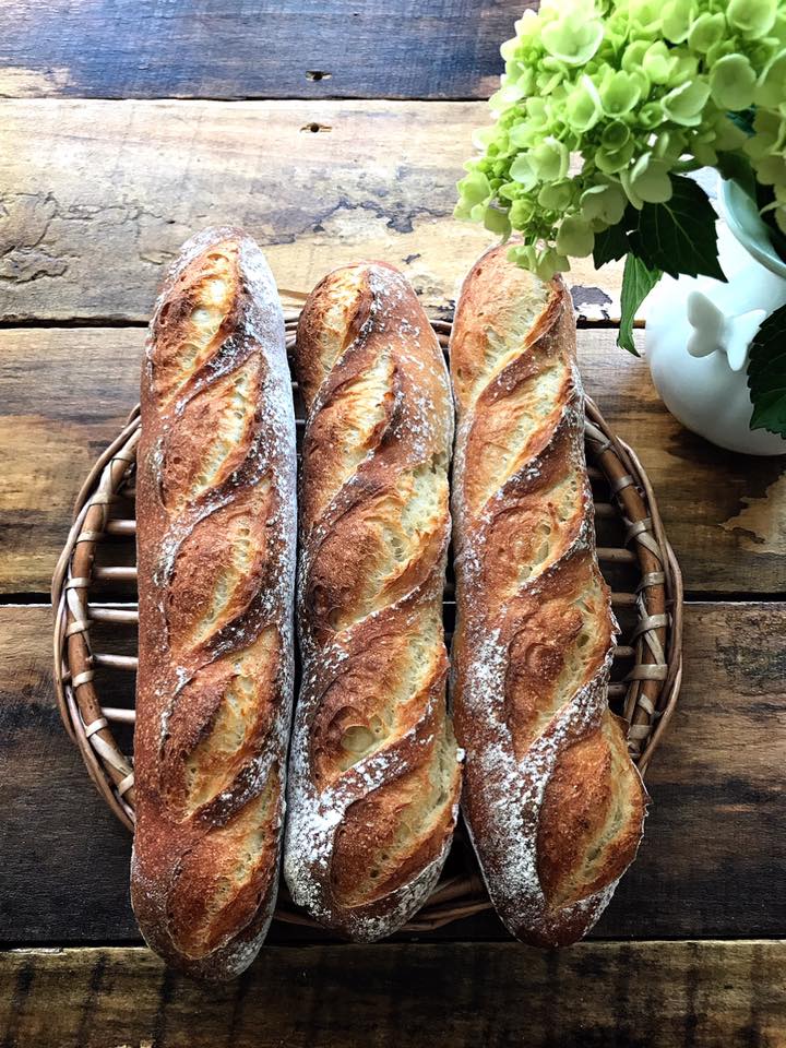 今日はバケット練習お休み。昨日焼いたバケットをいただきます