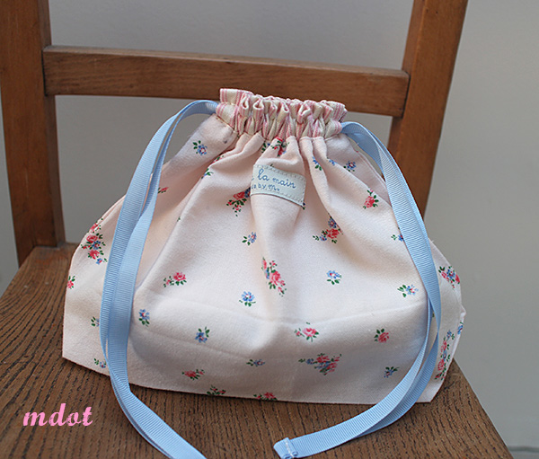 15年ほど前に買って、大事に大事にあたためていた(忘れていた)アンティーク柄の生地でお弁当袋を作りました。